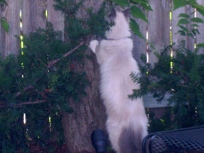 I've been ruling the house here for eight years now, and I have never stopped learning how to surprise my humans. Most recently, I learned how to get over the fence. All I have to do is get up in that tree, and I can go catting around down the block.